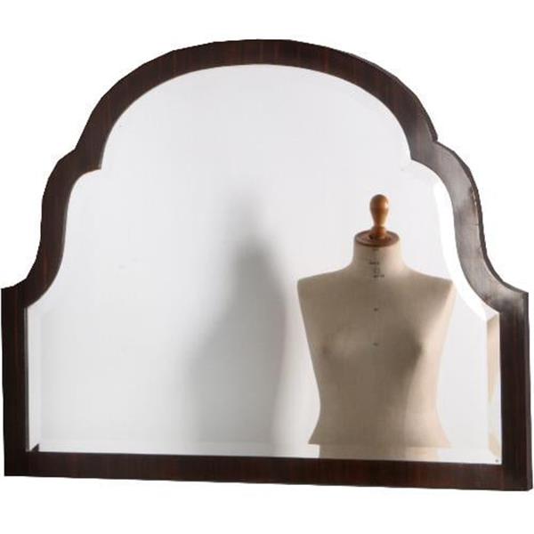 Franse Art Deco wandspiegel, rechthoekige van basisvorm met een geschulpte bovenkant. De platte eenvoudige lijst is belegd met palissander daardoor een typische verzorgde Franse Art Deco uitstraling: Simpel en Chique.