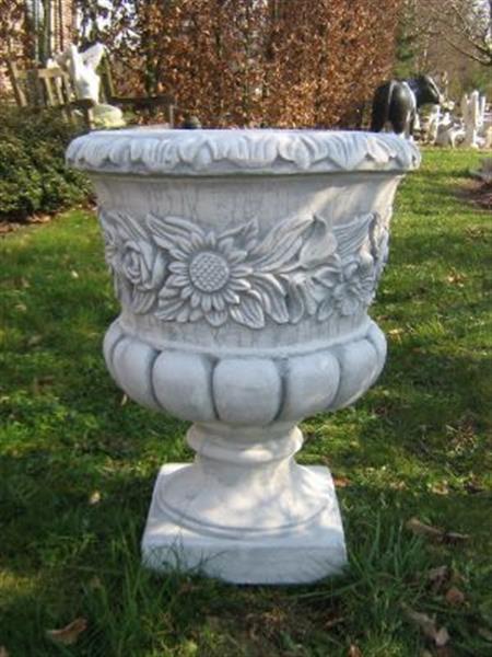 - Bloempot zonnebloem motief, massief gegoten steen, prachtig in uitvoering.