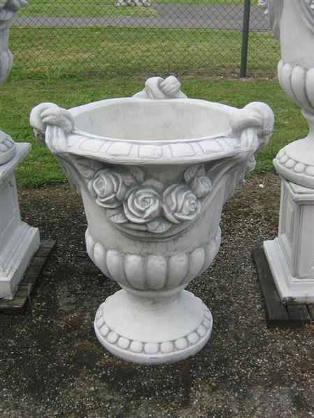 Levering inhoud: 1 x bloembak massief steen wit-grijs, rozenmotief.