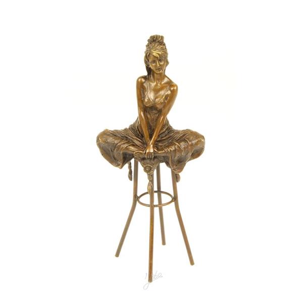 Leveringsomvang: 1 bronzen beeld van een dame op een barkruk (BJ-10).