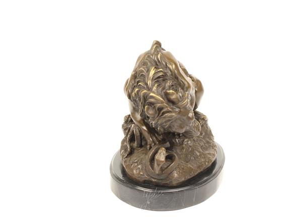 Levering: 1 x bronzen beeld leeuw en slang op marmer voet.