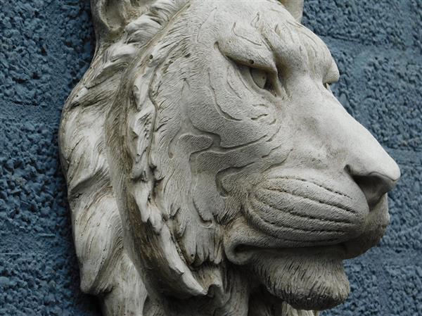 Levering: 1 x tijger- leeuwenkop, polystein, grijs.