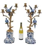 Kaarsenhouder (2) - Brons, Porselein Prachtige bronzen kandelaren. Ieder draagt vier kaarsen. Porseleinen vogels op een bronzen tak en een mooie za... Bezoek website t.e.a.b. Assen 4 maanden