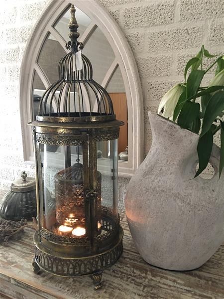 - Prachtige metalen lantaarn met aparte vuurkap en geslepen glas.