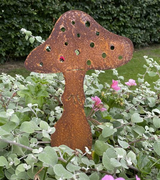 - Tuinsteker paddenstoel, roestig metaal, L SP271