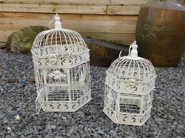 Levering: 2 vogelkooien, kleine + grote, metalen