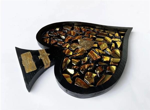 Een fles Armand de Brignac Gold-champagne omgetoverd tot een kunstwerk. Frame-afmetingen 45x35x3CM Samenstelling Frame handgemaakt van hout en zwart geverfd, met houtbeschermer. Epoxyhars Armand de Brignac Gouden fles Haak voor fotohanger Handgemaakt in Italië